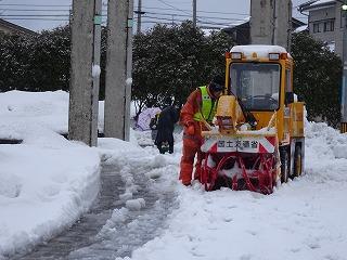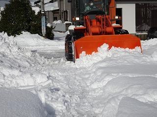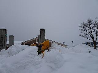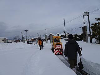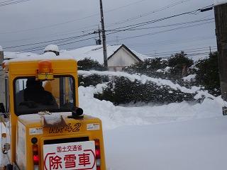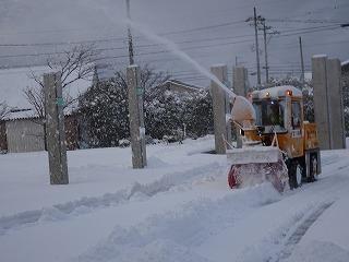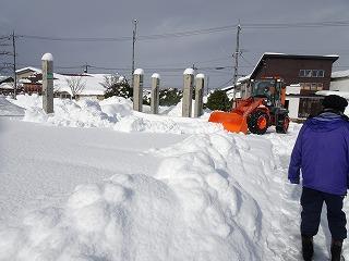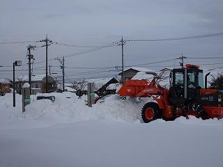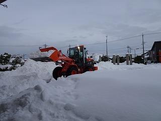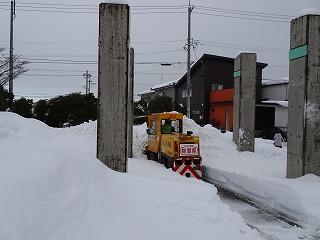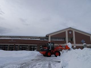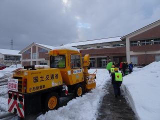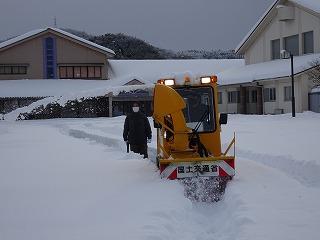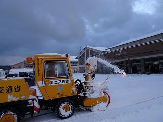 ↓朝早くから、本校の教員が除雪車で、通学路を除雪しました。