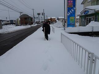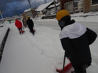 ↑まだ、誰も踏み入れていない歩道を踏み固めたり、スコップで除雪したりして、なんとか子供たちが歩ける道を作りました。