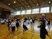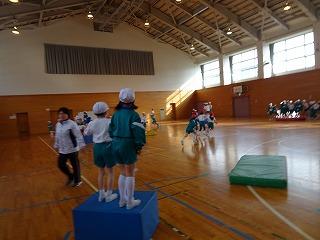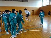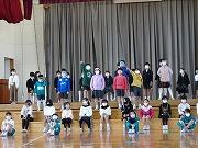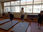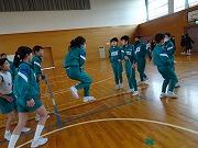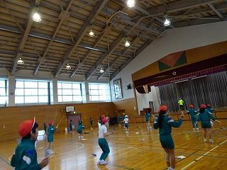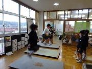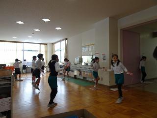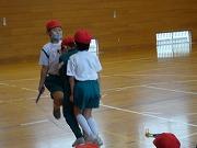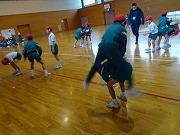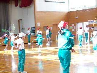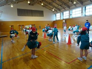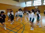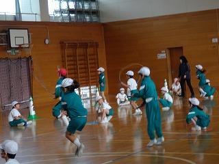 ↓子供たちは元気に縄跳び運動をして、体を温めました。