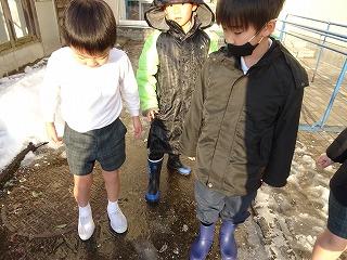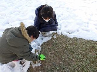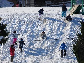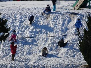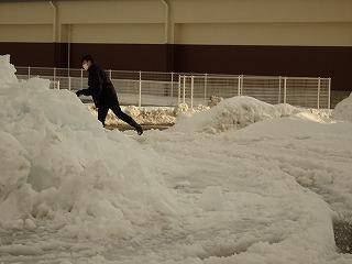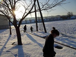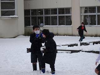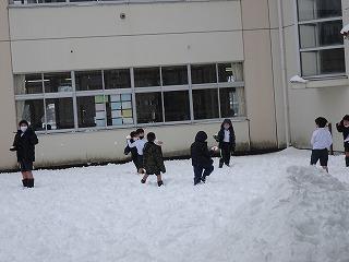 ↓昼休みは中庭では、雪上鬼ごっこや、雪合戦で雪遊びを楽しんでいました。