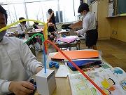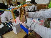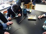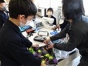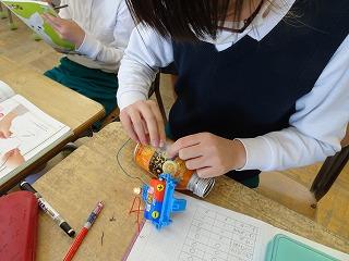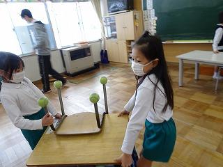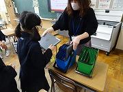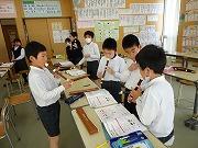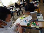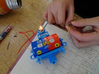 ↑3年生 理科では豆電球で明かりをつける学習をしています。回路に金属やプラスチック、木、等を入れて明かりがつくか試しました。