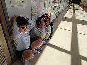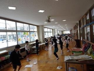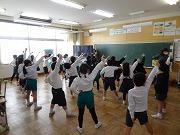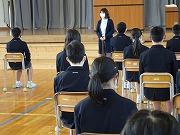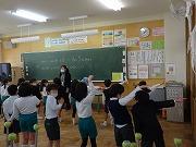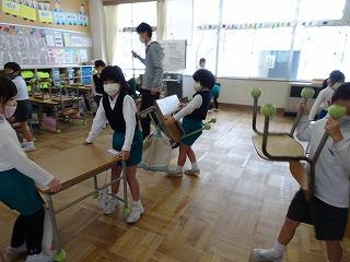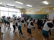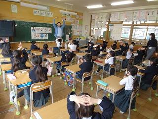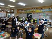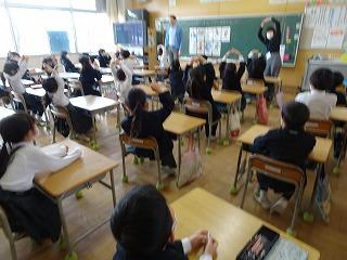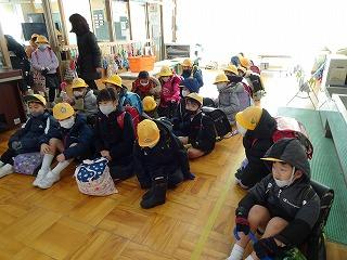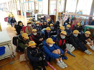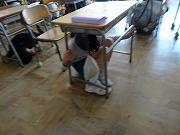 昼休みには、地震の避難訓練をしました。頭を守り、安全行動の「しゃがむ」、「かくれる」、「じっとする」の安全行動をとりました。休み時間中いきなりの訓練でしたが、子供たちは放送を聞いて自分で考え安全行動を素早くとることができました。
