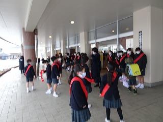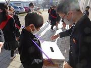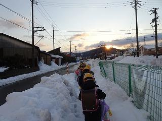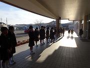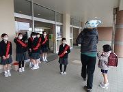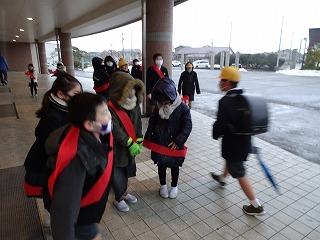 ↑来年度入学の年長さんが、家の方と通学の練習です。1か月後には、小学生ですね。入学を楽しみにしています。6年生は最後まであいさつ運動をして、全校にあいさつを呼び掛けています。