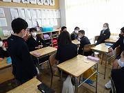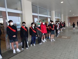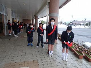 ↑玄関でも、寒い中、条南子があいさつ運動をしています。自分たちで決めた取組を実行しているところが素敵です。
