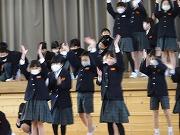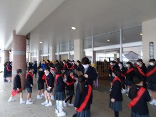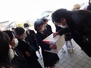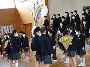 ↑6年生の皆さん、そして5年生の皆さん、明日も元気に登校してください。1年生から4年生はお家でお祝いをしてくださいね。