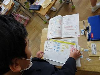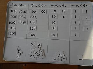 ↑2年生の算数は、1000より大きな数について調べる学習です。数の仕組みを説明して、学びを確かなものにしていました。