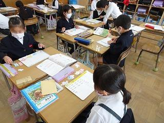 ↓2年道徳 いのちの学習 「お母さんのおなかの中で主人公のさとが1cmの大きさの時から心臓が動いていることをしって驚きました」というお母さんへの手紙を読んで、お母さんは「病院でさとの小さな小さな心臓がチカチカと動いたのを見た時の感動は忘れられません」という教材文です。ご家庭でも、お子さんが生まれた時の様子や家族の喜び、感動を話してあげてください。今日は命のすばらしさを考えました。