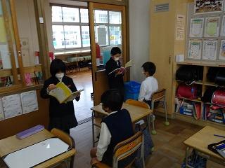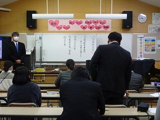 自分で考えて、自分から行動できるようになったことを紹介しました。春休みは、家での決まりをつくり、午前中は勉強して、そして、「自分の命は自分で守る」安全に気を付けて過ごしてください。3月には離任される先生とのお別れの式があります。4月には一つ上の学年の教室でまた元気に登校生活をスタートさせましょう。