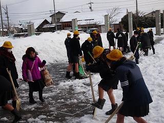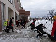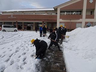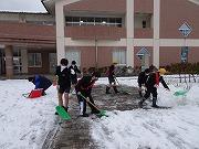 本日は教職員で、学校周辺の通学路の確保や学校前の道路の除雪を行いました。