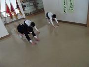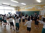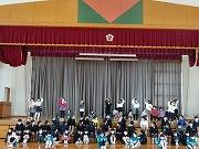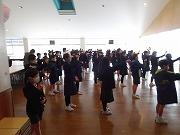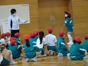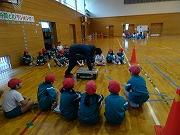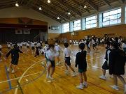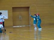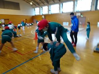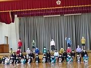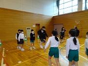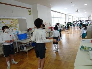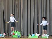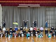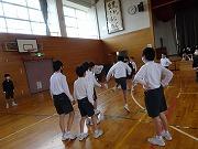 ↓2年生と6年生で合同縄跳び練習です。6年生のお手本を見て、2年生も縄跳びにチャレンジです。
