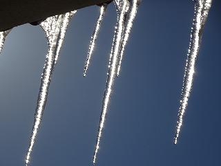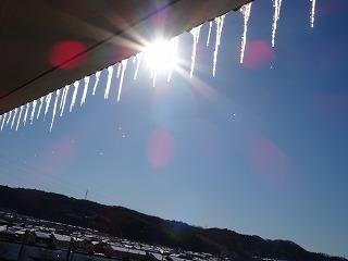 ↓日中になると、つららに太陽が当たって、氷のアートが美しかったです。