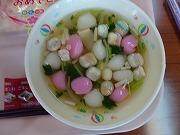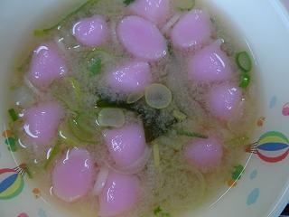 ↓今年最初の給食は、紅白お雑煮と、出世魚のぶりの照り焼き、そして紅白なますでした。お正月気分を教室のみんなでいただきました。