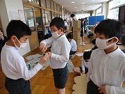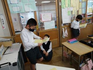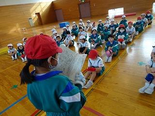 ↑6年生は、1年生や2年生にお手紙を渡しました。6年生の思いをしっかり受けとめていました。