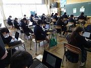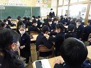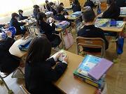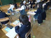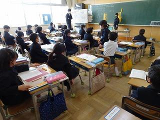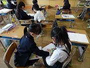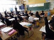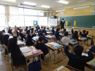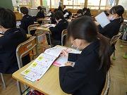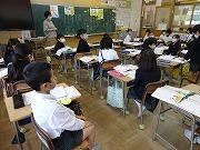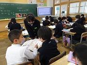 ↓5年生 学活 「いじめ撲滅宣言を書いたのに、まだ嫌な言葉が聞こえてくる」どうしたらよいか話し合いたいと、提案者が学級全員にアンケートを取り、その結果を基に話し合いました。学級目標や学年目標を達成したい、だからやめてほしい等、いろいろな考えが出されました。より良い学級を作るために、自分達で動き出し、解決していく姿に、高学年としての成長を感じました。あと2週間、きっと、温かい言葉でいっぱいの学級になって、学級を閉じることができると思います。