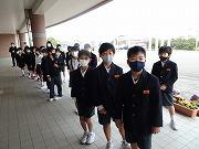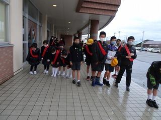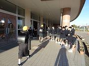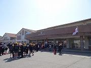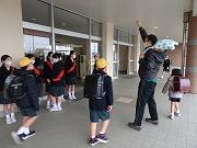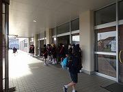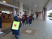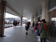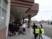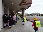 ↓今日は学年ごとに集団下校をしました。まず、ワークスペースで、グループごとに並びました。2年生の様子です。みんな「おさない」「はしらない」「しゃべらない」の約束を守っています。命を守る集団下校ですから、落ち着いて真剣に行動します。