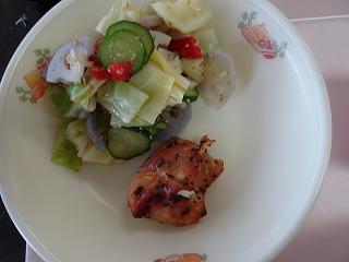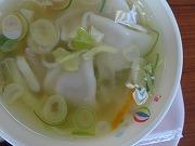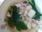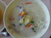 ↓ 今日の給食です。ちくわの磯部天ぷら、もやしときゅうりの酢の物、鶏団子の塩鍋です。鶏団子の塩鍋は、初めていただきました。毎日おいしいメニューばかりです。