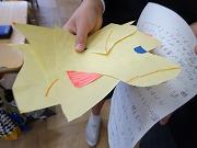 ↓1年算数 色板で作った形を友達に見せて、作り方を説明しました。