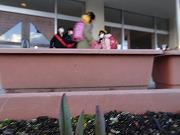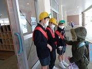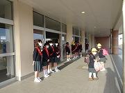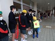 来年入学してくる1年生が登校練習に来ました。お互いぴかぴかの1年生ですね。