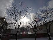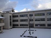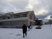 ↑校門付近は、ほんの少しですが坂になっています。雪が積もると、いっそう、急坂に感じます。