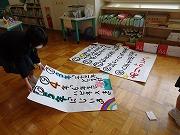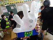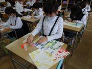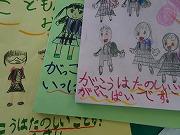 ↓4年生が作った手話のポスターを見て、3年生が手話の練習をしていました。4年生のポスターが役に立っていますね。