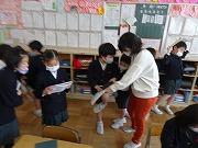 ↑図書ボランティアさんが、図書館整備のお仕事をしてくださいました。先日お渡しできなかった方に、6年生からのお礼のお手紙をお渡しいたしました。わくわくする素敵な図書館の環境整備や6年間でたくさんの本の読み聞かせをしていただき、ありがとうございました。