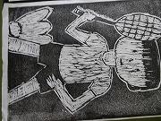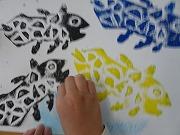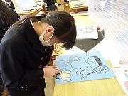 ↓3年 図工 版画です。どんな風合いで表現するか考えて版を作りました。