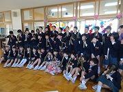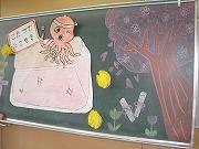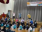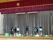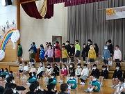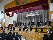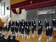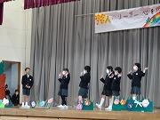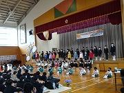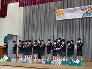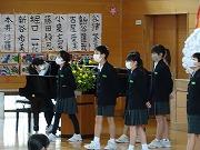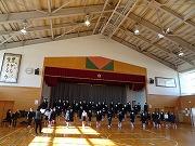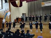 ↑明日は在校生は5年生だけが出席します。今日は、1,2年生は6年生の歌を聞いたり、一緒に歌ったりして、卒業をお祝いしました。
