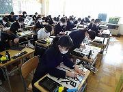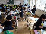 今日は、3,4,5年生が町学力調査に挑みました。3・4年生は、算数・国語を、5年生は算数・国語・理科・社会をです。これまで学んできたことがどれだけ身に付いているか学力の状況を見る調査です。