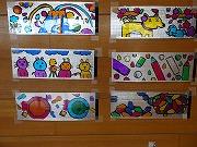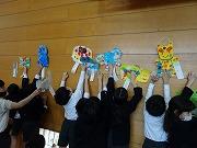 ↓1年図工 壁や掲示板などいろいろな素材を写したものの形から、何に見えるか想像力を働かせ、作品を作りました。豊かな発想を培っています。