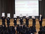 ↓6年生英語スピーチ 中学校でしたいことや自分の夢を英語で語りました。友達のスピーチに拍手をして称えました。