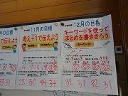 ↑各学級で決めた、先あいさつを広める取組を進めています。寒い冬の朝ですが、元気いっぱいのあいさつのおかげで、心が温かくなります。