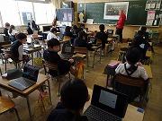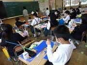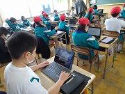 ↓今朝は、3組系列でクロムブックを使いました。自分のパソコンをもらい、本当にうれしそうです。