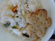 ↓今日はひな祭り給食です。ちらし寿司、花形豆腐ハンバーグ、菜の花の胡麻和え、あさりのすまし汁に、桃の花ゼリーでした。ちらし寿司には、かんぴょう、干しシイタケ、にんじん、インゲンが入っていました。桃の節句らしい給食で、春を味わいました。