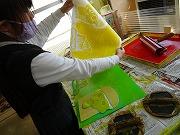↓5年家庭科 いよいよナップサックが仕上がりそうです。