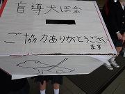 4年生が総合的な学習で福祉について学習しました。そして、目の不自由な方々に盲導犬が行き渡るよう、盲導犬の育成に役に立ちたいと、立ち上がり、募金活動を行うことにしました。自分たちでポスターやお知らせを作り、各教室へお願いに行き、募金箱や登り旗も作成しました。「社会に役立つために、できることをしたい」思いを行動に表しています。