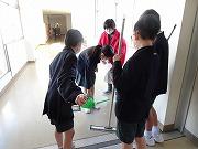 ↓6年家庭科 学び舎に感謝の気持ちを込めて清掃活動をしてくれました。卒業まで1週間となりました。たくさんの思い出が詰まっている学び舎を、きれいにしてくれて、ありがとう。