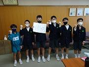 ↑優勝報告に来てくれました。津幡ビーンズの皆さんです。河北郡市のミニバスケットボール新人戦にて、見事優勝しました。おめでとうございます。日頃の練習の成果とチームワークのよさで勝ち取った栄冠だと思います。これからも練習に励んでください。