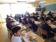 ↑今日は卒業お祝い給食です。6年生にとって小学校での最後の給食です。みんな喜んで味わっていただきました。調理員の皆様、6年間、おいしい給食をありがとうございました。