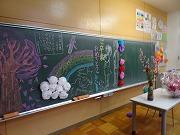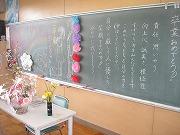 ↓卒業をお祝いする気持ちを込めて、5年生と先生、条南小学校の職員みんなで卒業式準備をしました。6年教室もきれいに飾り付けました。