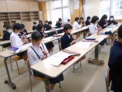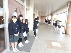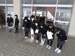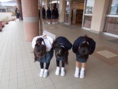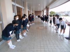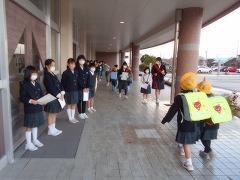↓玄関ではあいさつボランティアの皆さんが、元気な挨拶を呼び掛けてくれています。おかげで気温がずいぶん低くなりましたが、心はほかほかです。ありがとう。