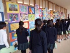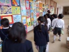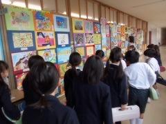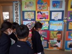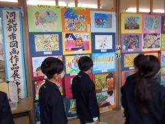 ↑河北郡市の中学年の図画作品展です。構図や色遣い、色使いなど、これからの作品の参考にしてください。