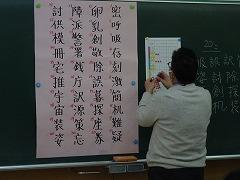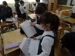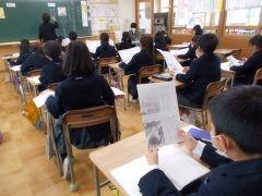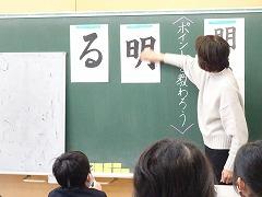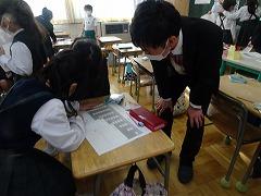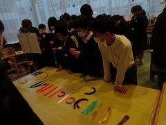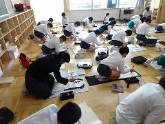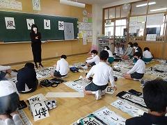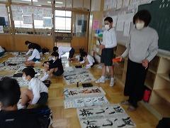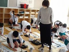 ↑5年生と4年生の書初め練習です。筆の運び方や、速さ、間隔など丁寧にご指導くださいました。