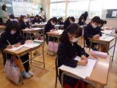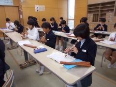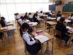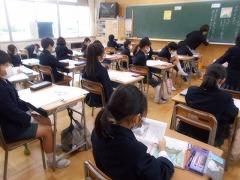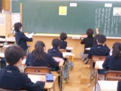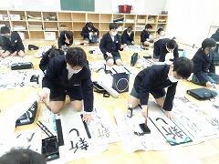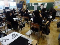 ↓2年生は書初め練習です。まず姿勢を整えて、清らかな心を作って、書きました。