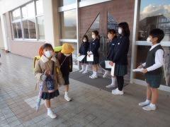 計画委員さんやあいさつボランティアさんが、朝玄関であいさつを広めています。すてきなあいさつで、心が元気になります。ありがとう!