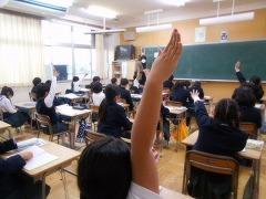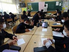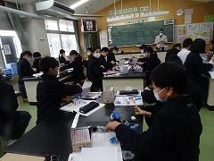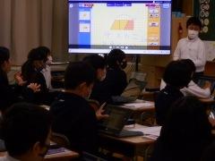 ↑4年社会 河北潟の干拓について話し合っていました。どのような労働だったのか、当時の様子を考えていました。