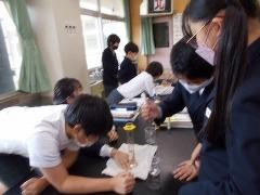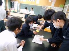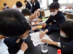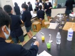 ↓5年 理科 水溶液の学習です。今日は正確にみずを50ml量り取る学習をしました。メスシリンダーやスポイトの使い方を学びました。これから実験をするうえで大切な使い方を学び、実際にやってみました。班で協力して安全にできました。