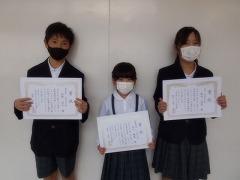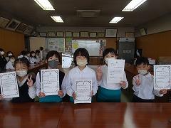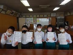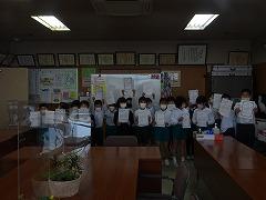 ↑お昼の放送で、表彰式を行いました。夏休みの応募作品で、こんちゅうの絵の図画作品展で、素晴らしい賞を受賞した皆さんです。おめでとうございます。昆虫をよく見て観察し、図画で表現したものです。皆さんも、来年応募してみませんか。