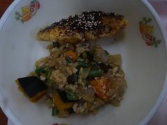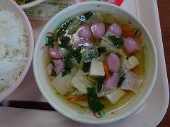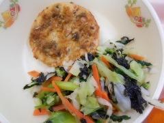 ↑今日は冬至 かぼちゃを食べて冬を元気に過ごしましょう。ゆずゼリーもありました。メニューは魚のゆかり揚げ、かぼちゃのそぼろ煮、そして、れんこん団子の味噌汁です。れんこんはおろして、米粉と混ぜ合わせてあり、もちもちな感触でした。魚はホキという白身の魚でした。
