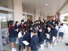 ↑図書ボランティアさんからのしおりのプレゼントは、今日は高学年でした。たくさん本を読んでしおりをいただきましょう!