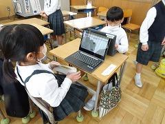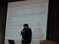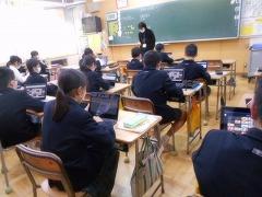 ↑冬休みを安全に過ごすお話と、クロムブックの約束を守って使うお話をしました。クロムブックは津幡町教育委員会から借りているもので、学習用に使うものです。自分の家以外には、もち出さないでください。冬休もクロムブックを使って学習を進めましょう。